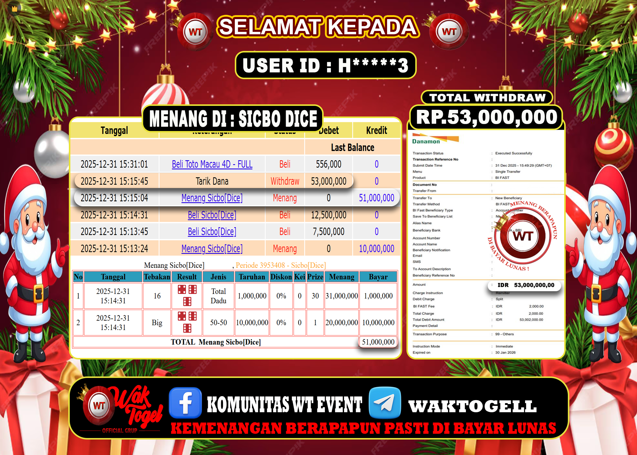 BUKTI PEMBAYARAN CASINO WAKTOGEL BUKTI PEMBAYARAN CASINO WAKTOGEL RP. 53.000.000 – GAME : SICBO DICE TANGGAL (USER ID : H*****3) |31-12-2025| CASH LUNAS ! Kami […]