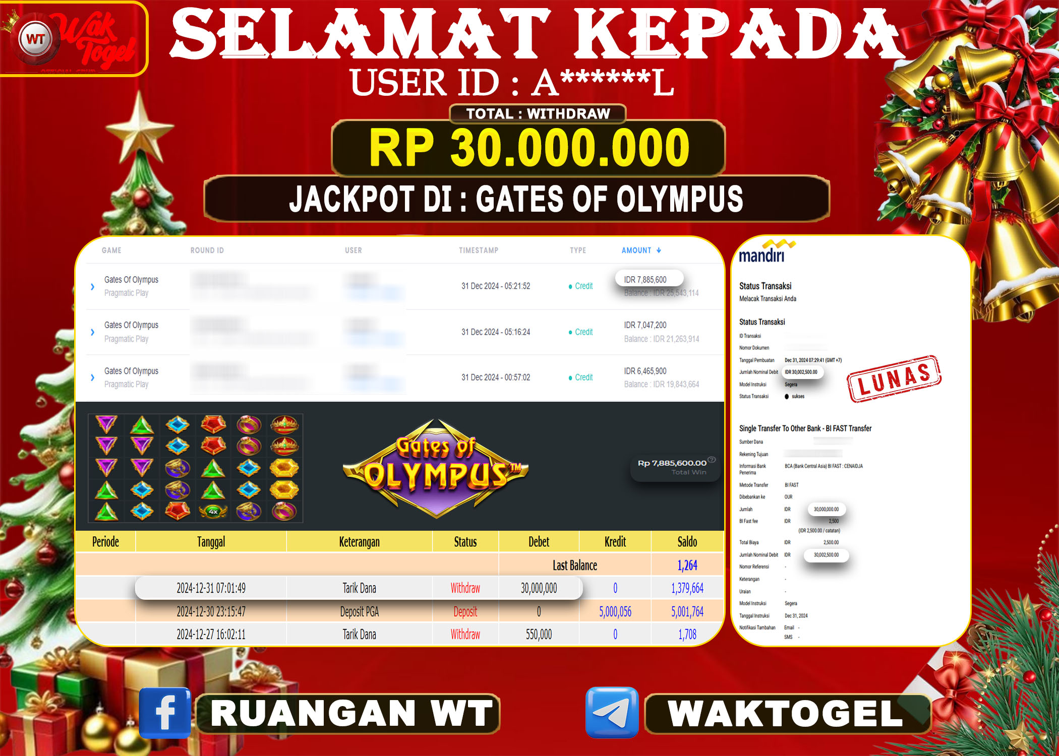 BUKTI PEMBAYARAN SLOT WAKTOGEL BUKTI PEMBAYARAN SLOT WAKTOGEL RP. 30.000.000 – GAME : SLOT GATES OF OLYMPUS  (USER ID : A******L) TANGGAL |31-12-2024| CASH LUNAS […]
