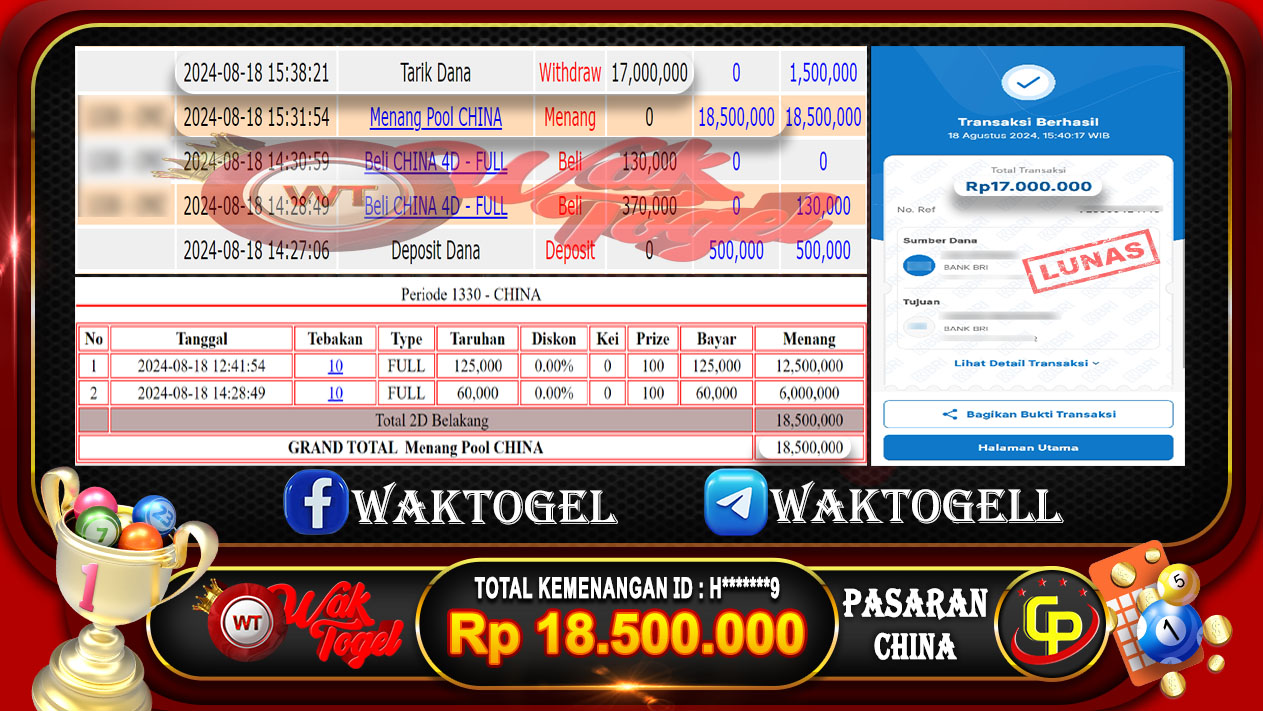 BUKTI PEMBAYARAN CHINA WAKTOGEL BUKTI PEMBAYARAN CHINA WAKTOGEL RP. 18.500.000 – GAME : TOGEL CHINA POOLS (USER ID : H*******9) TANGGAL |18-08-2024| CASH LUNAS ! […]