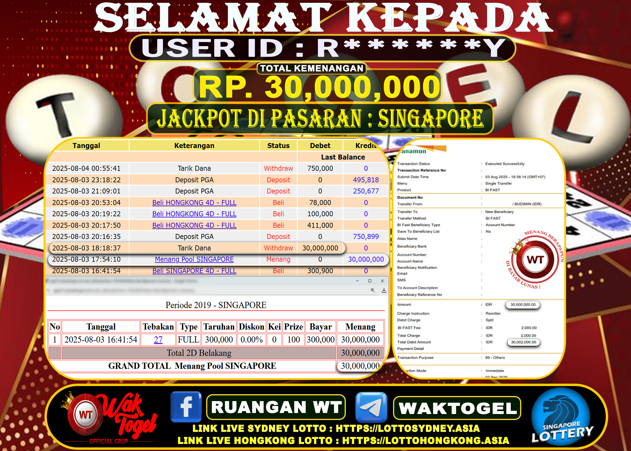 JACKPOT TOGEL WAKTOGEL BUKTI PEMBAYARAN SINGAPORE WAKTOGEL By JPWT April 12, 2025 0 comments 2 min read BUKTI PEMBAYARAN SINGAPORE WAKTOGEL BUKTI PEMBAYARAN SINGAPORE WAKTOGEL RP. 56,000,000 GAME : TOGEL SINGAPORE POOLS (USER ID : M*****1) TANGGAL |12-04-2025| CASH LUNAS ! Kami […]