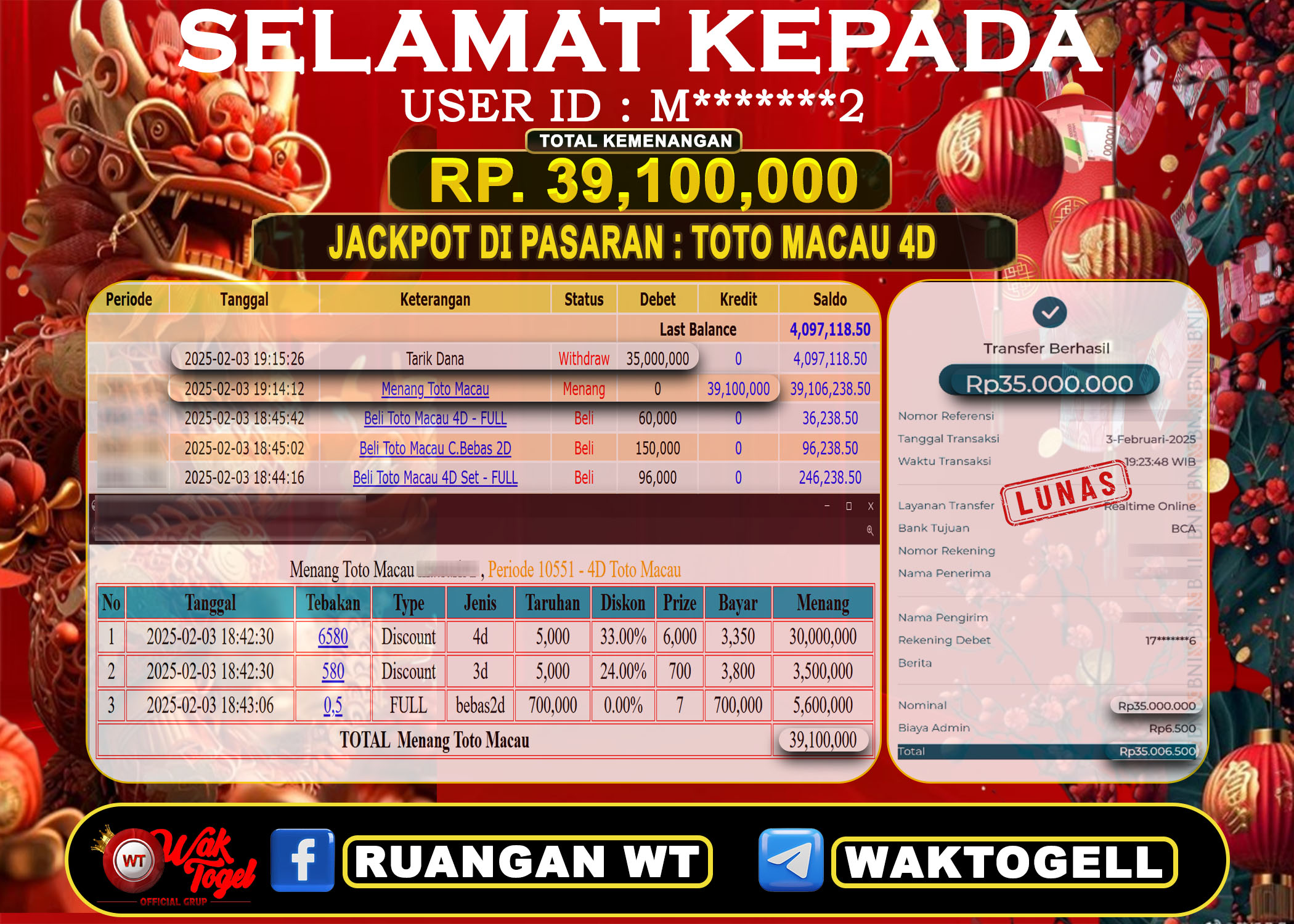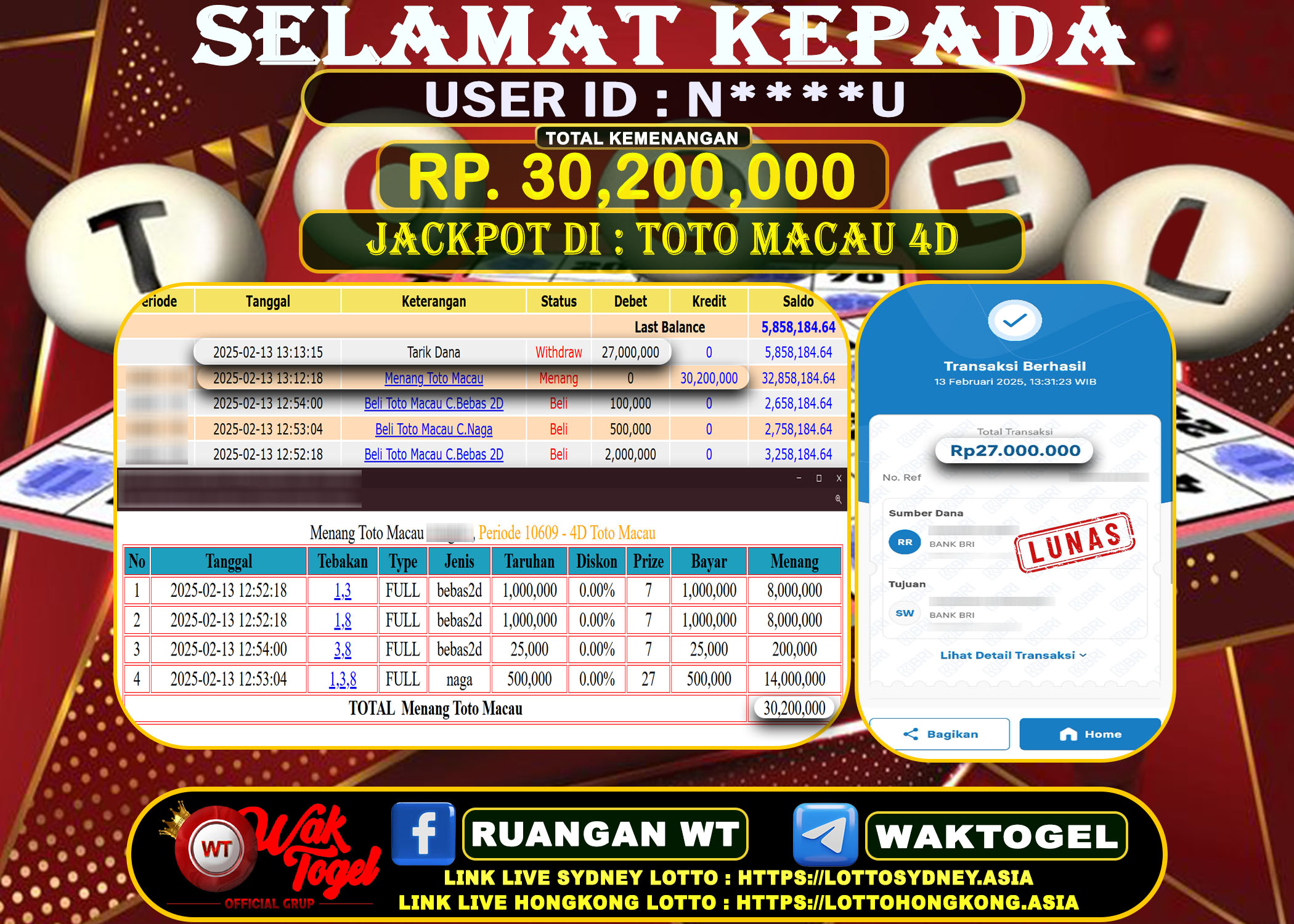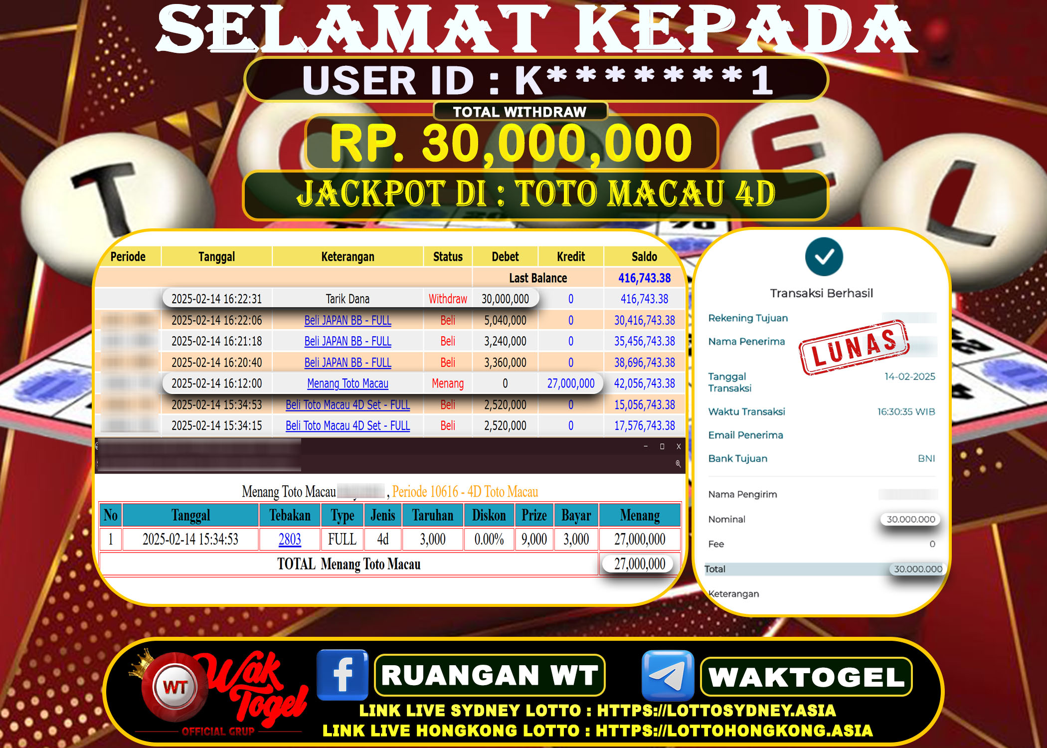 JACKPOT TOGEL WAKTOGEL BUKTI PEMBAYARAN TOTO MACAU 4D WAKTOGEL By JPWT Februari 14, 2025 0 comments 2 min read BUKTI PEMBAYARAN TOTO MACAU 4D WAKTOGEL BUKTI PEMBAYARAN TOTO MACAU 4D WAKTOGEL RP. 30,000,000 – GAME : TOGEL TOTO MACAU 4D (USER ID : K*******1) […]