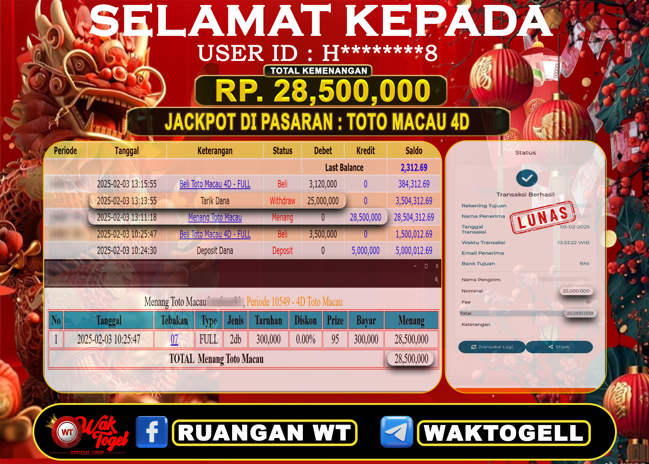 JACKPOT TOGEL WAKTOGEL BUKTI PEMBAYARAN TOTO MACAU 4D WAKTOGEL By JPWT Februari 3, 2025 0 comments 2 min read BUKTI PEMBAYARAN TOTO MACAU 4D WAKTOGEL BUKTI PEMBAYARAN TOTO MACAU 4D WAKTOGEL RP. 28,500,000 – GAME : TOGEL TOTO MACAU 4D (USER ID : H********8) […]