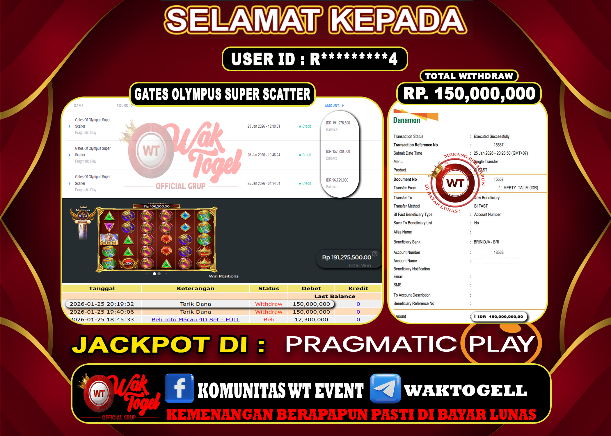 BUKTI PEMBAYARAN SLOT WAKTOGEL BUKTI PEMBAYARAN SLOT WAKTOGEL RP. 150,000,000 – GAME : SLOT GATES OF OLYMPUS SUPER SCATTER (USER ID : R*********4) TANGGAL |25-01-2026| […]