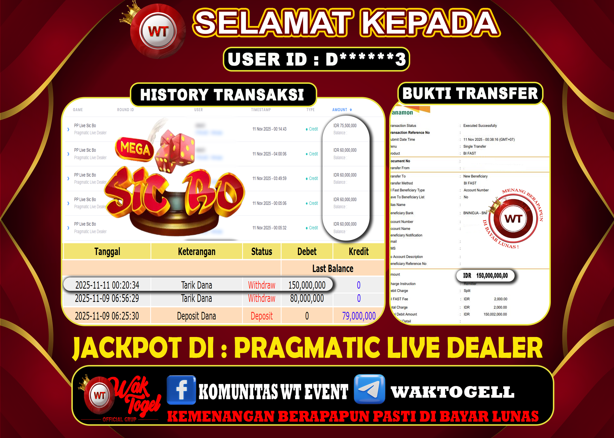 BUKTI PEMBAYARAN SLOT WAKTOGEL BUKTI PEMBAYARAN SLOT WAKTOGEL RP. 150,000,000 – GAME : PP LIVE SIC BO (USER ID : D*****3) TANGGAL |11-11-2025| CASH LUNAS […]
