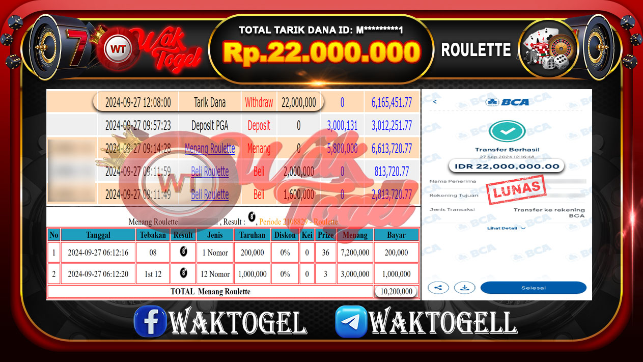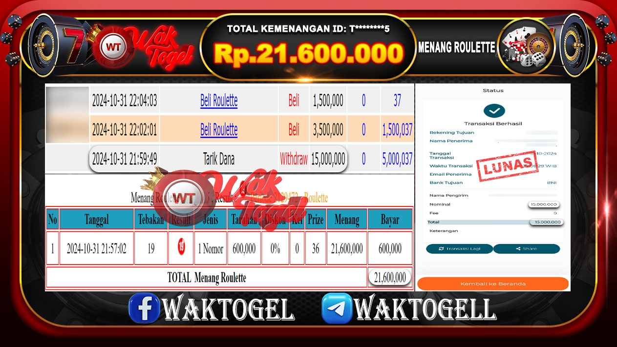 Bukti Pembayaran Jackpot Waktogel Untuk SLOT, TOGEL , LIVECASINO